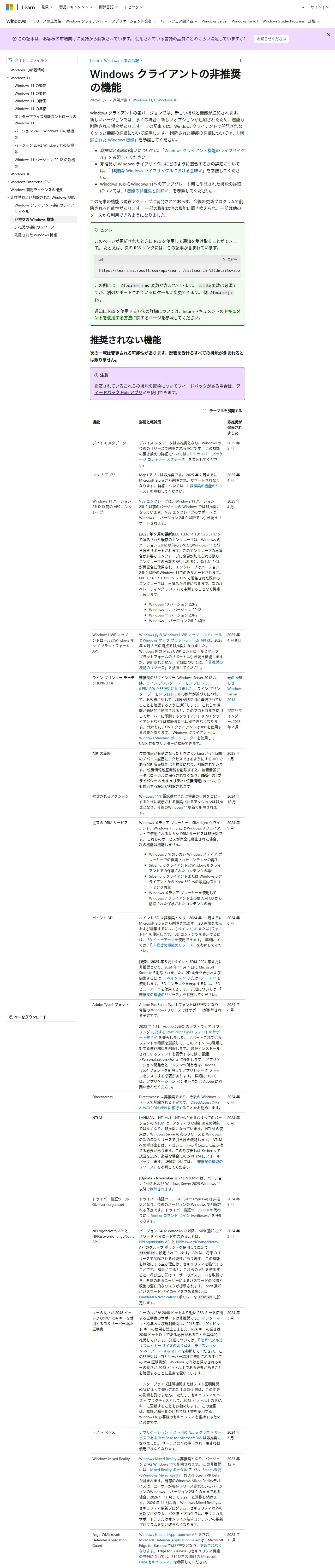 https://learn.microsoft.com:443/ja-jp/windows/whats-new/deprecated-features
