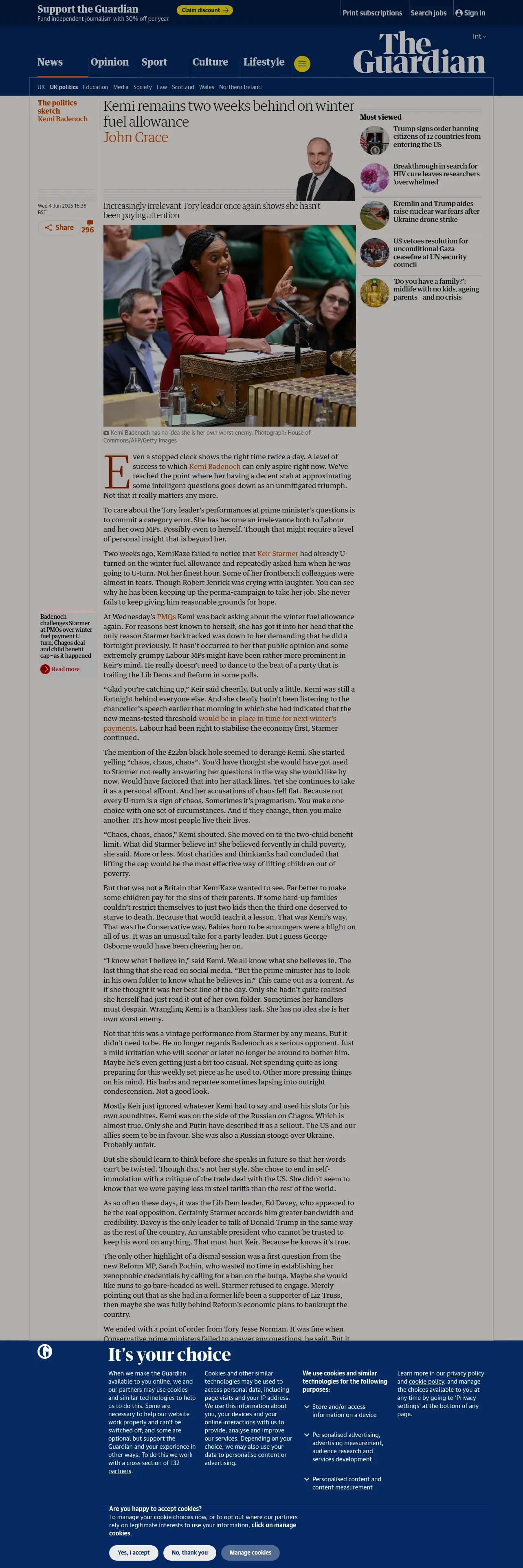 https://www.theguardian.com:443/politics/2025/jun/04/kemi-badenoch-remains-two-weeks-behind-on-winter-fuel-allowance