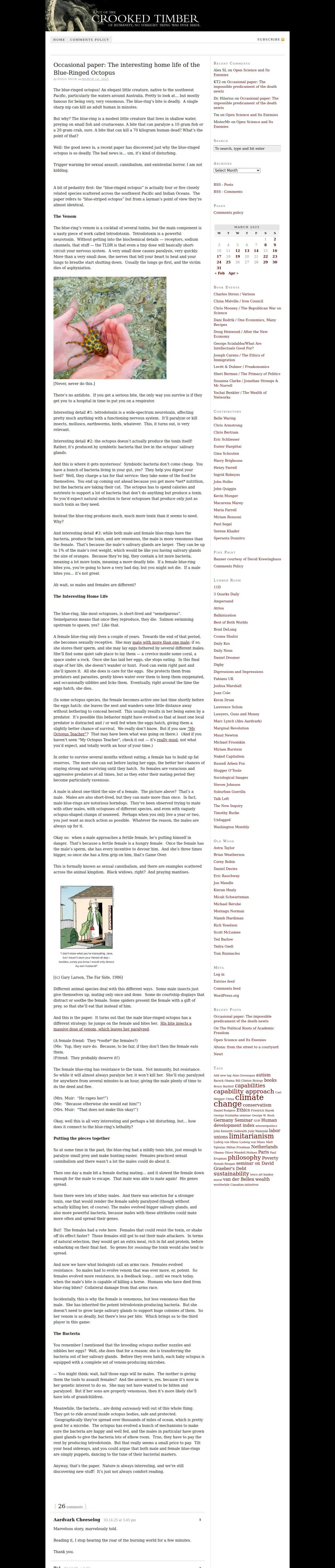 https://crookedtimber.org:443/2025/03/14/occasional-paper-the-interesting-home-life-of-the-blue-ringed-octopus/