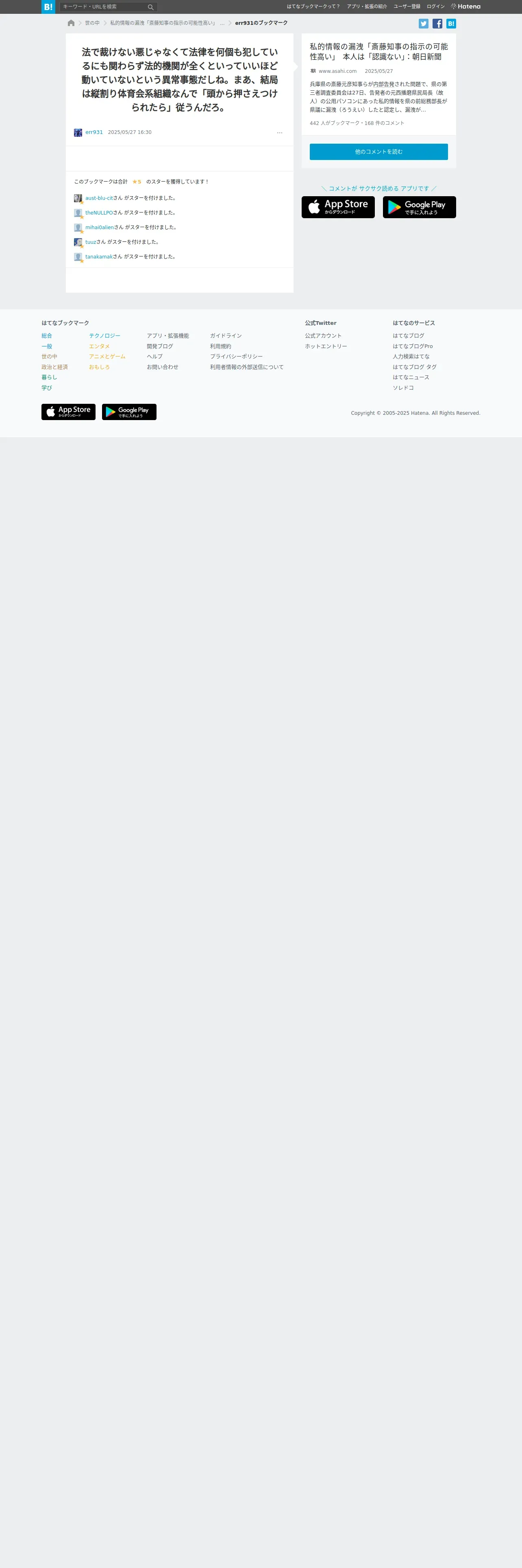 取得元URL: https://b.hatena.ne.jp:443/entry/4770984286162925121/comment/err931