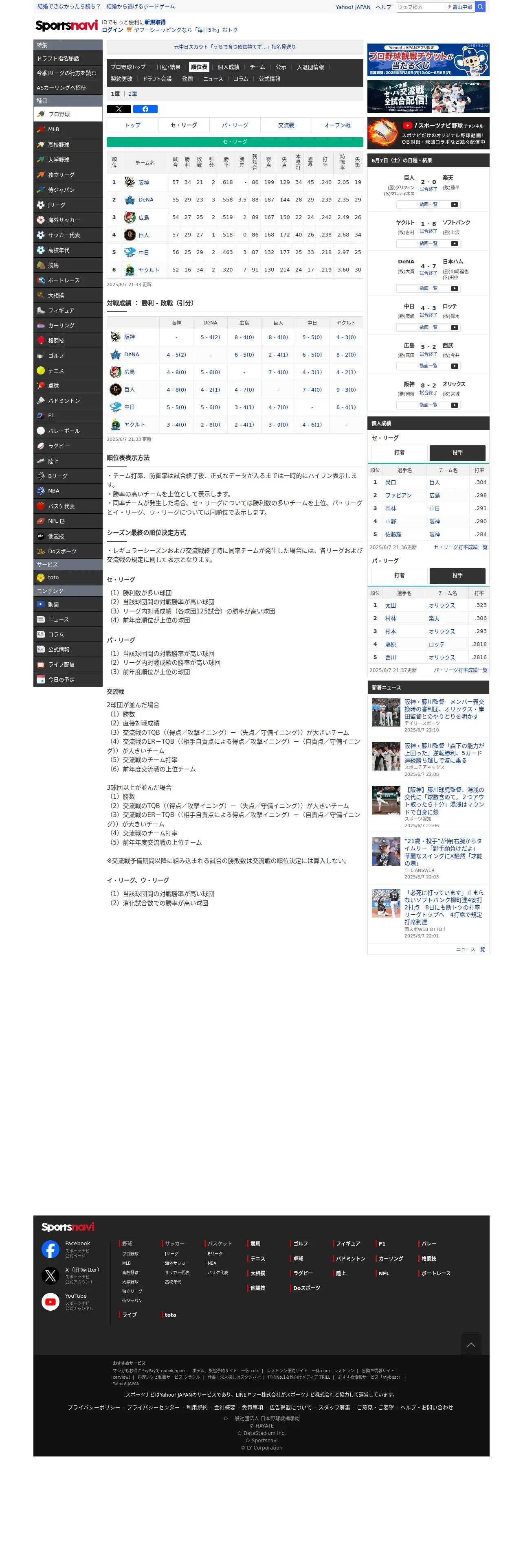 https://baseball.yahoo.co.jp:443/npb/standings/detail/1