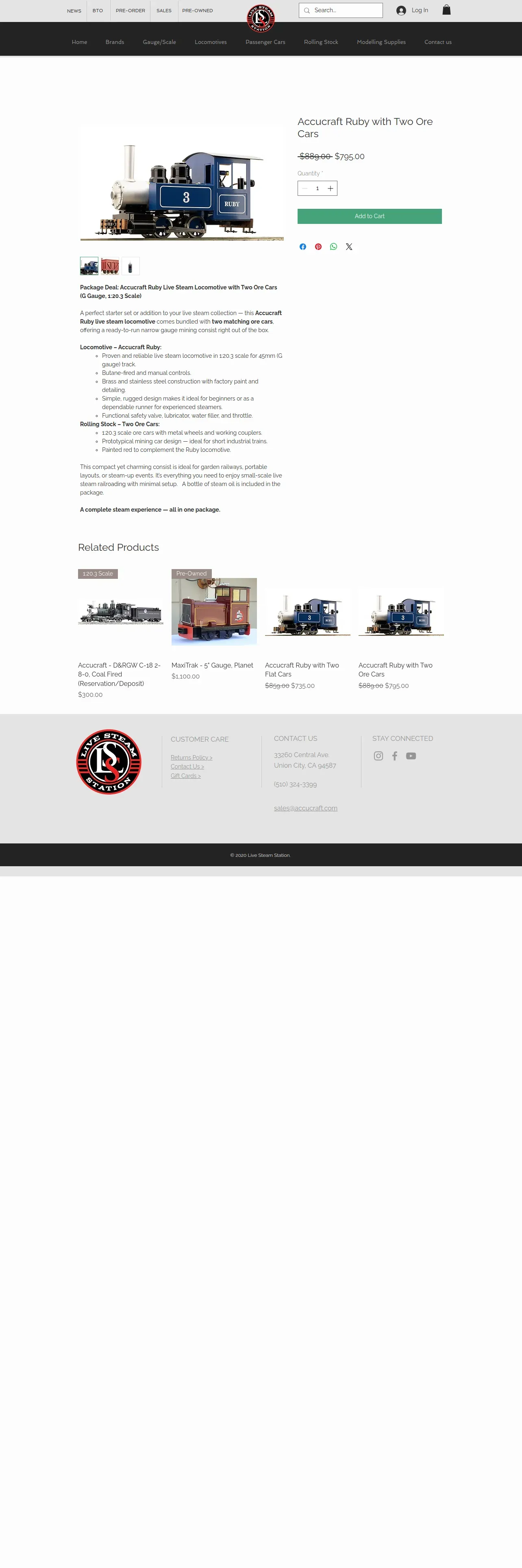 https://www.livesteamstation.com:443/product-page/accucraft-ruby-with-two-ore-cars