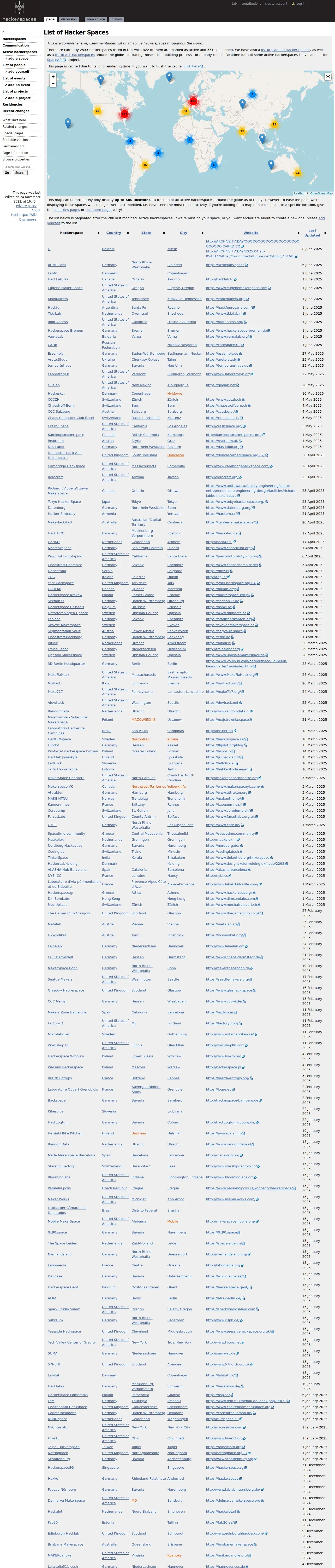https://wiki.hackerspaces.org:443/List_of_Hacker_Spaces