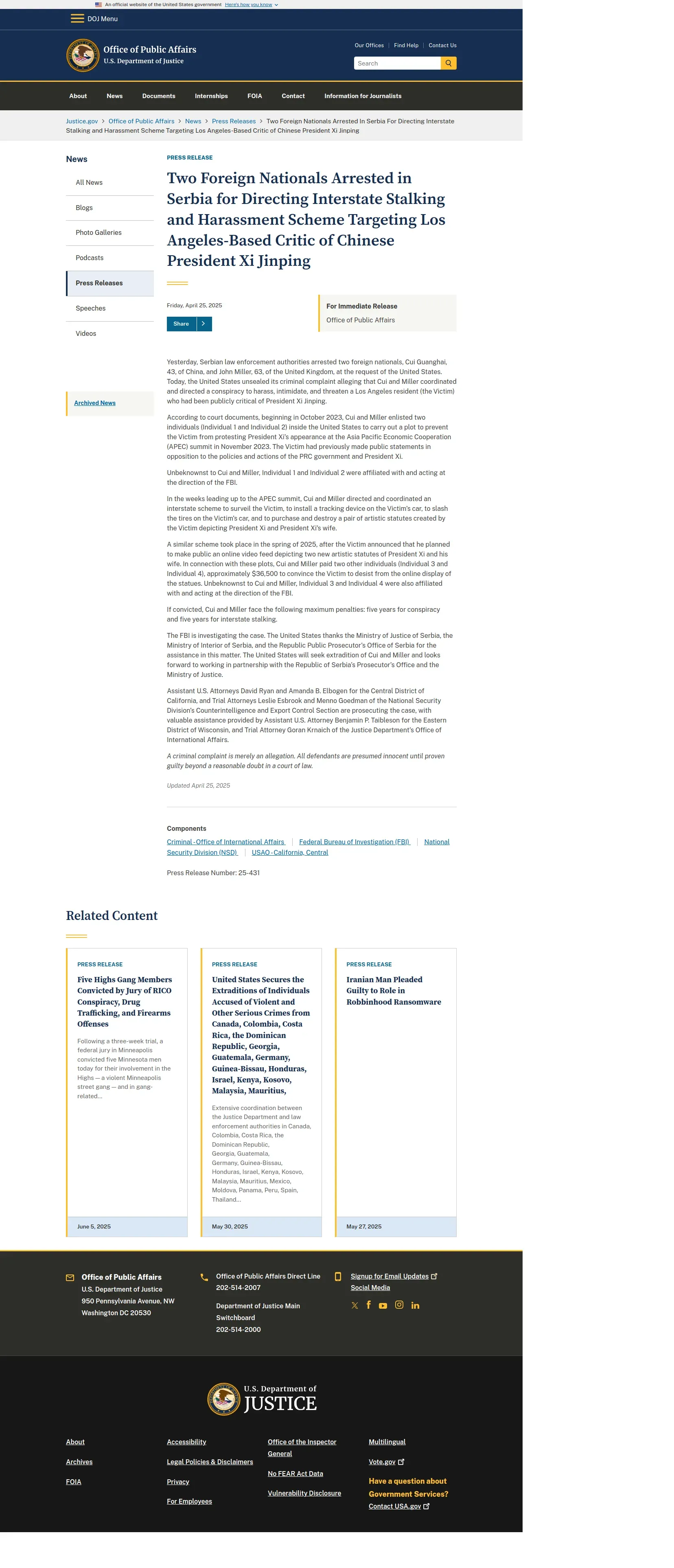 https://www.justice.gov:443/opa/pr/two-foreign-nationals-arrested-serbia-directing-interstate-stalking-and-harassment-scheme