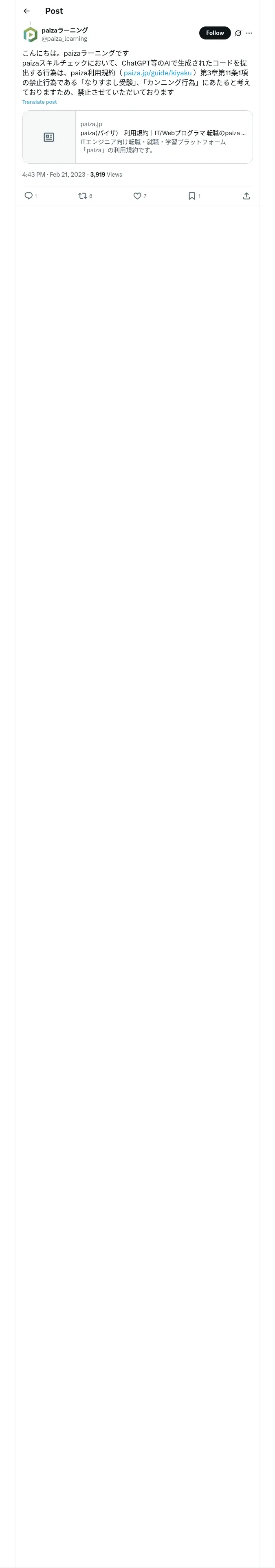 https://x.com:443/paiza_learning/status/1627937060396085250