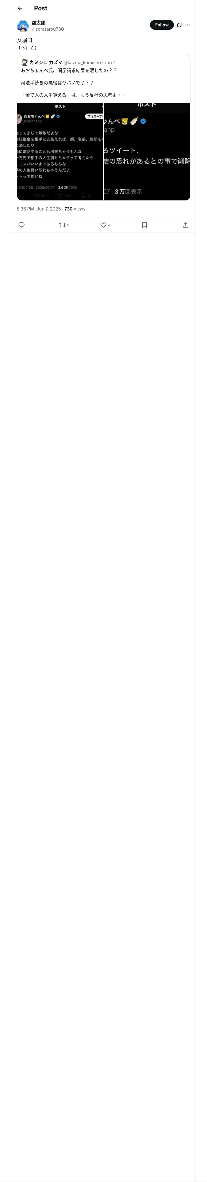 https://x.com:443/soratarou730/status/1931314291518640492