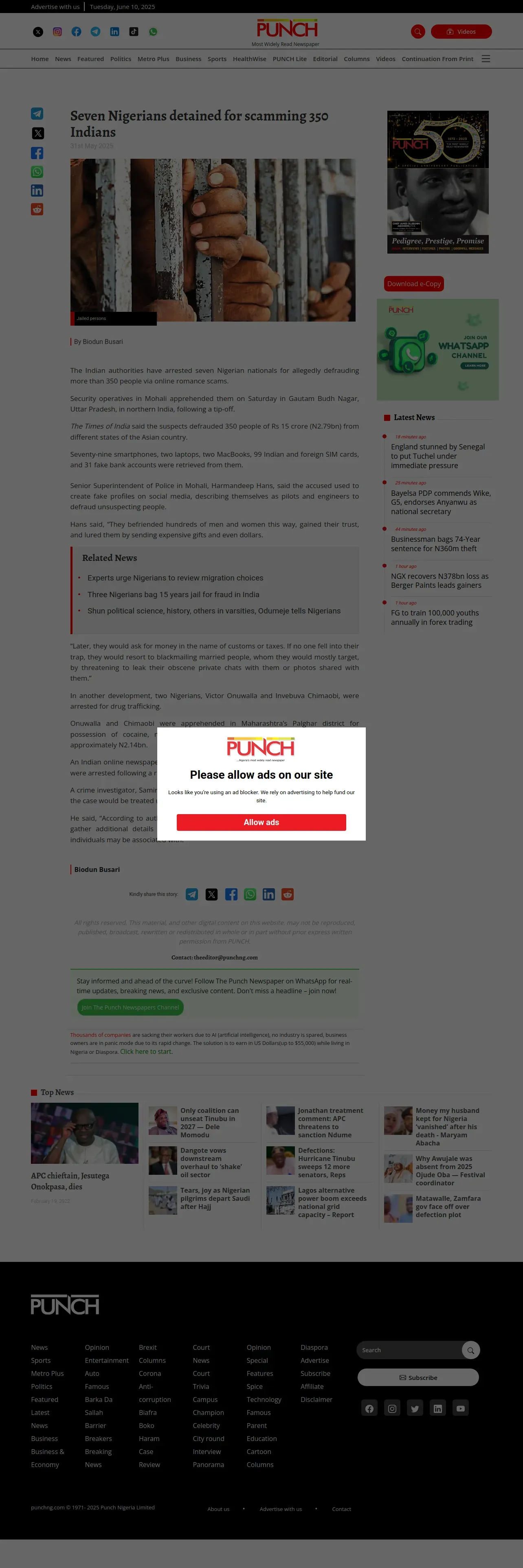 https://punchng.com:443/seven-nigerians-detained-for-scamming-350-indians/