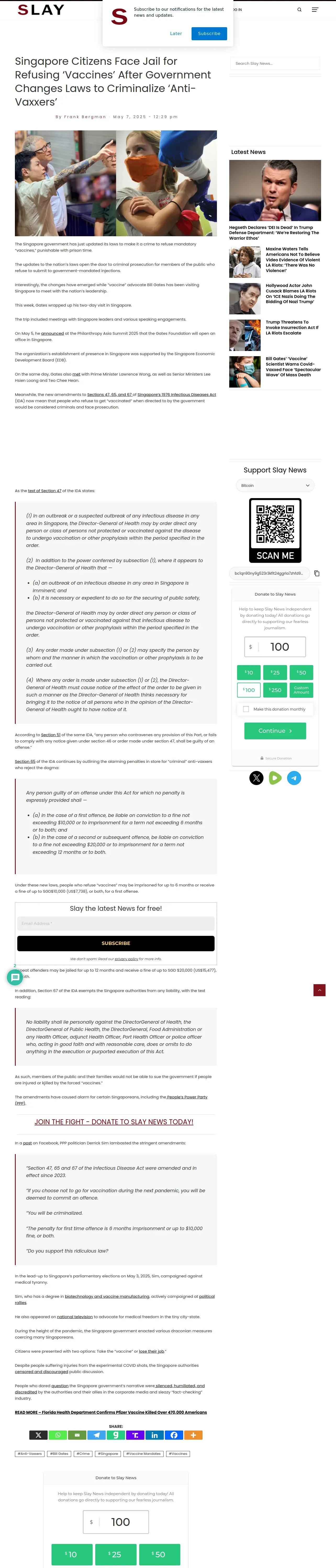 https://slaynews.com:443/news/singapore-citizens-face-jail-refusing-vaccines-government-changes-laws-criminalize-anti-vaxxers/