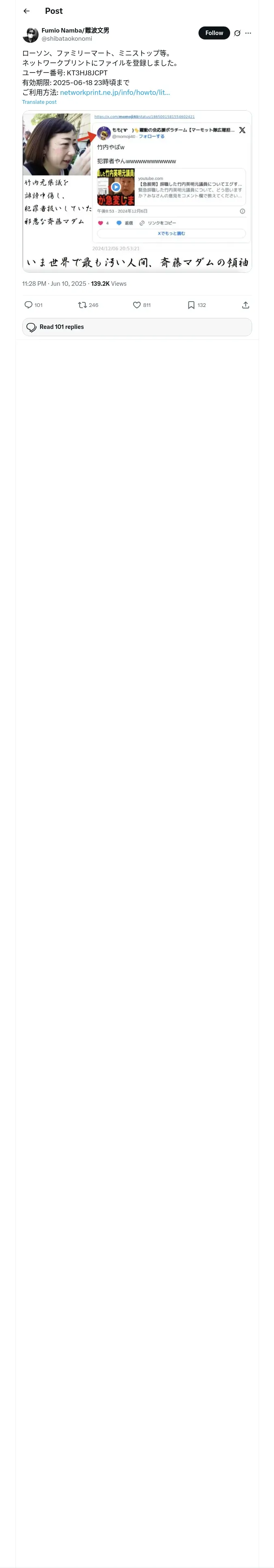 https://x.com:443/shibataokonomi/status/1932444811661017098?t=BSISbL-VCSQgEQ34gYOp4A&s=19