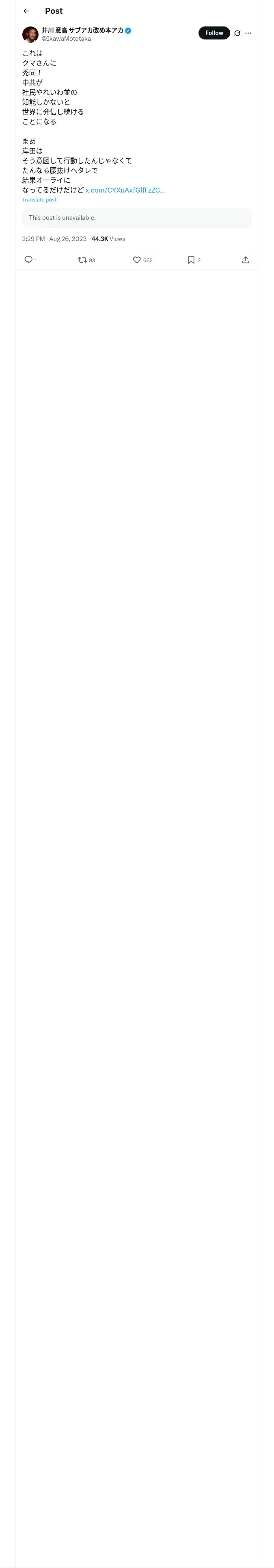https://x.com:443/IkawaMototaka/status/1695307377657205159