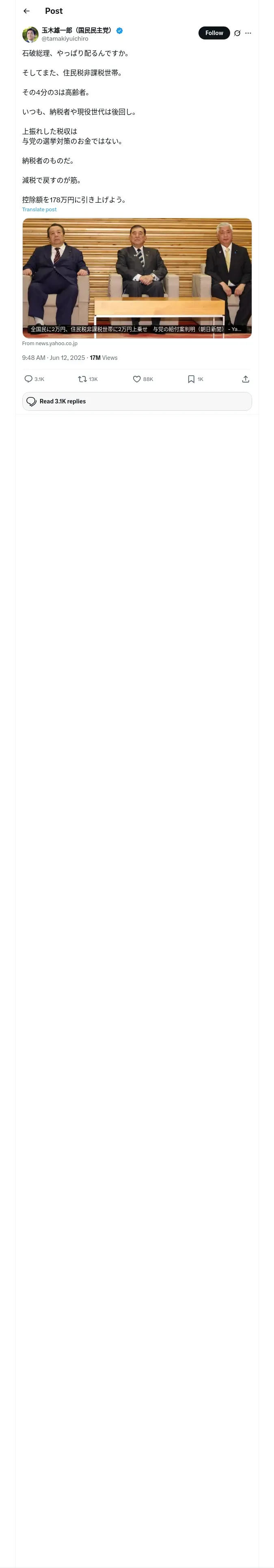 取得元URL: https://x.com:443/tamakiyuichiro/status/1932963272426434765