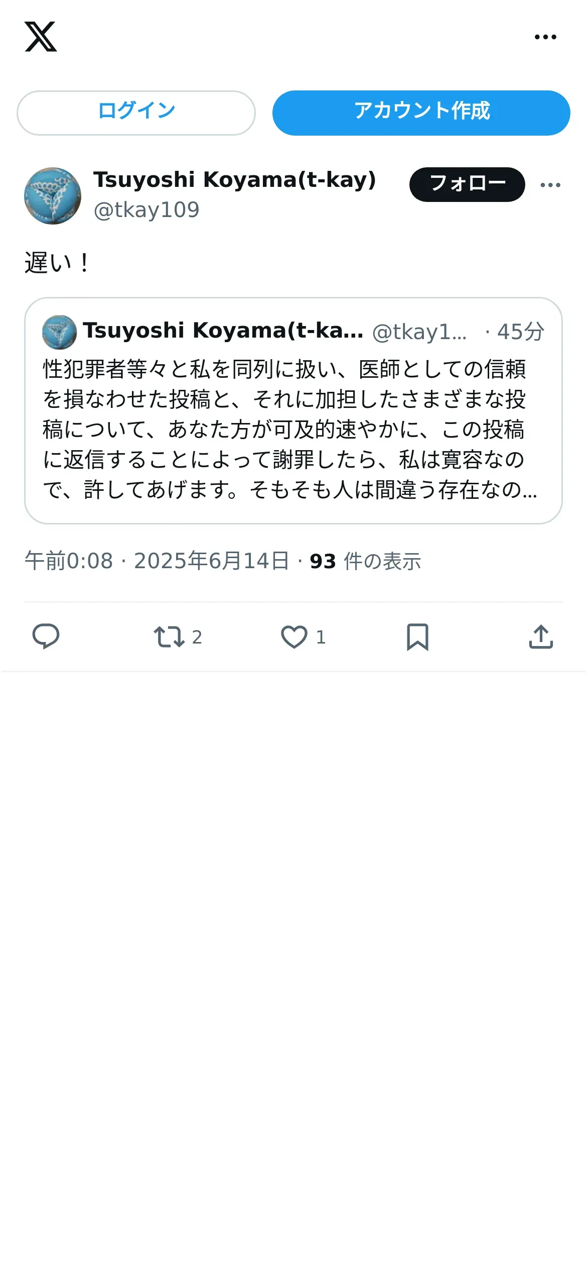 https://x.com:443/tkay109/status/1933542040996098543