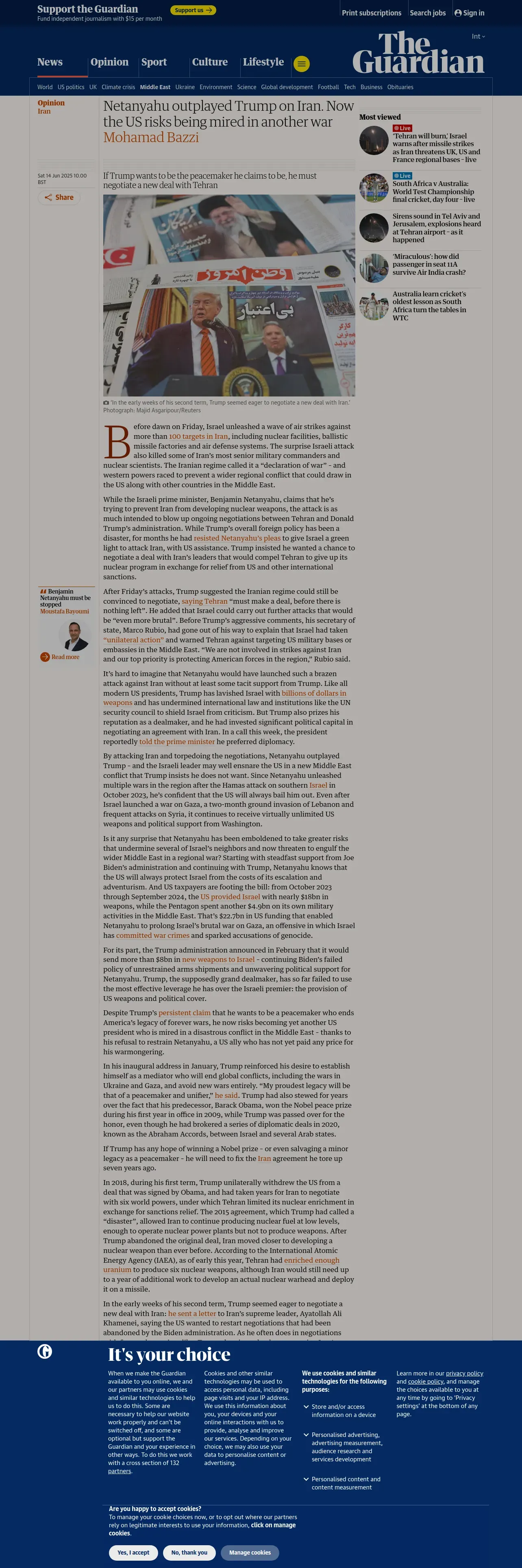 https://www.theguardian.com:443/commentisfree/2025/jun/14/netanyahu-trump-iran-israel-war-risk