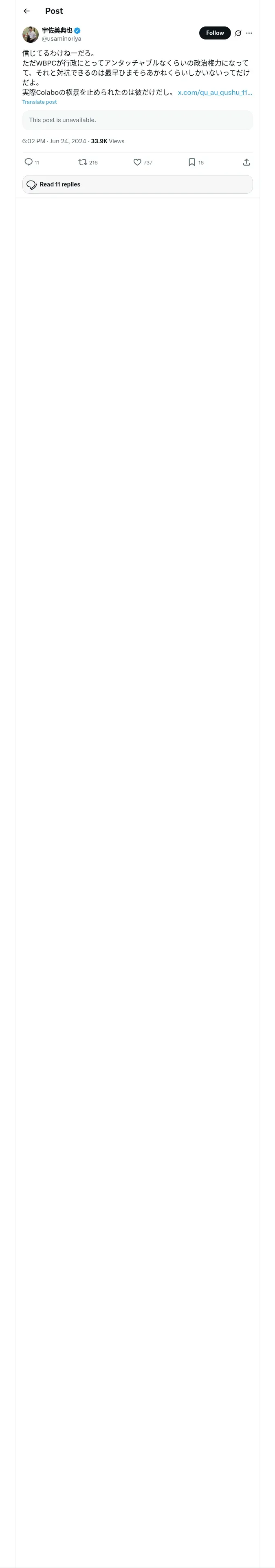https://x.com:443/usaminoriya/status/1805164566558711966