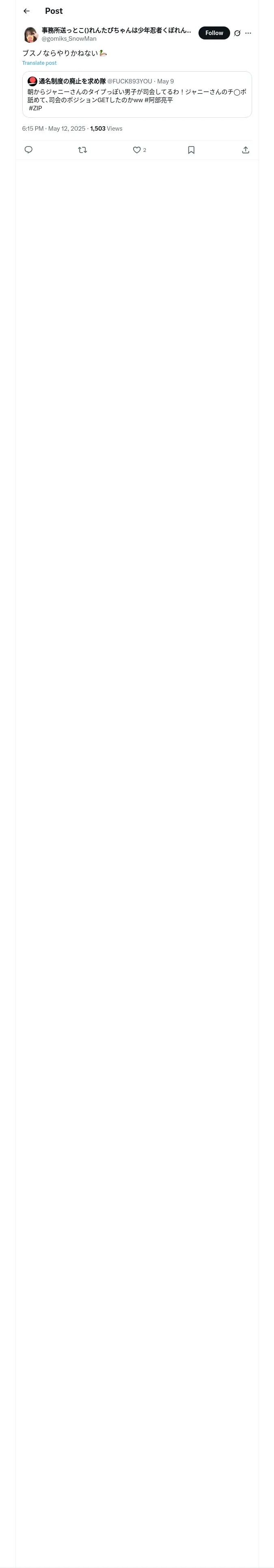 https://x.com:443/gomiks_SnowMan/status/1921856655714619798?t=2WrBYORcp9fLp1MKEO8r8g&s=09