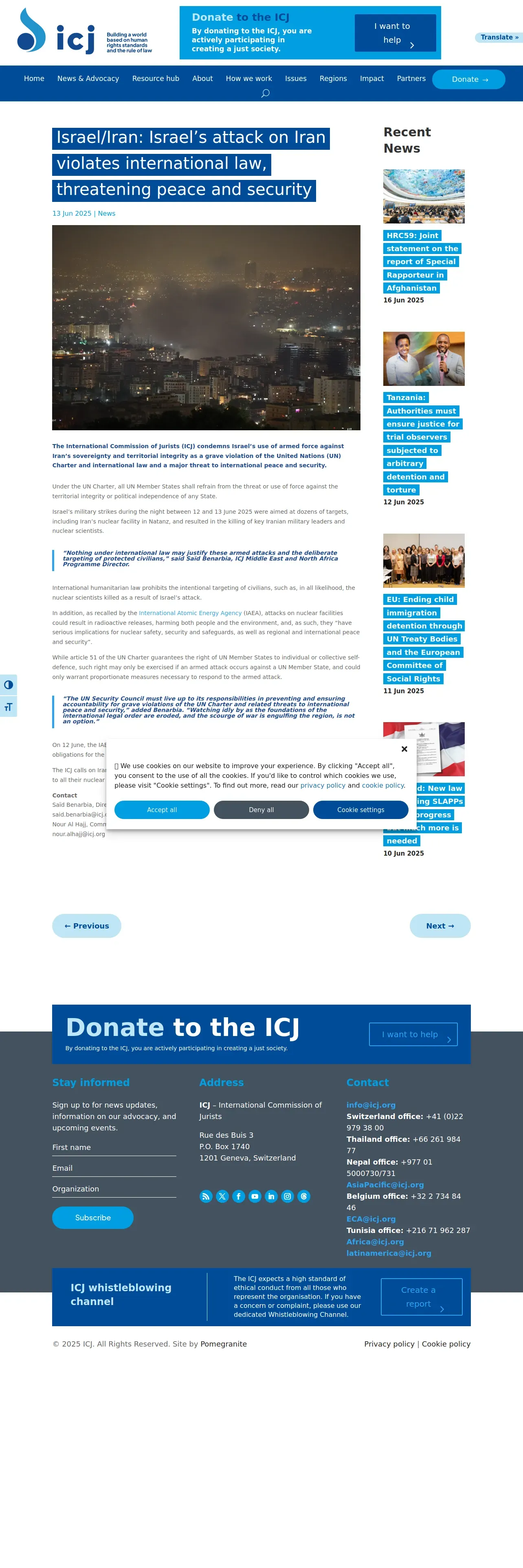 https://www.icj.org:443/israel-iran-israels-attack-on-iran-violates-international-law-threatening-peace-and-security/