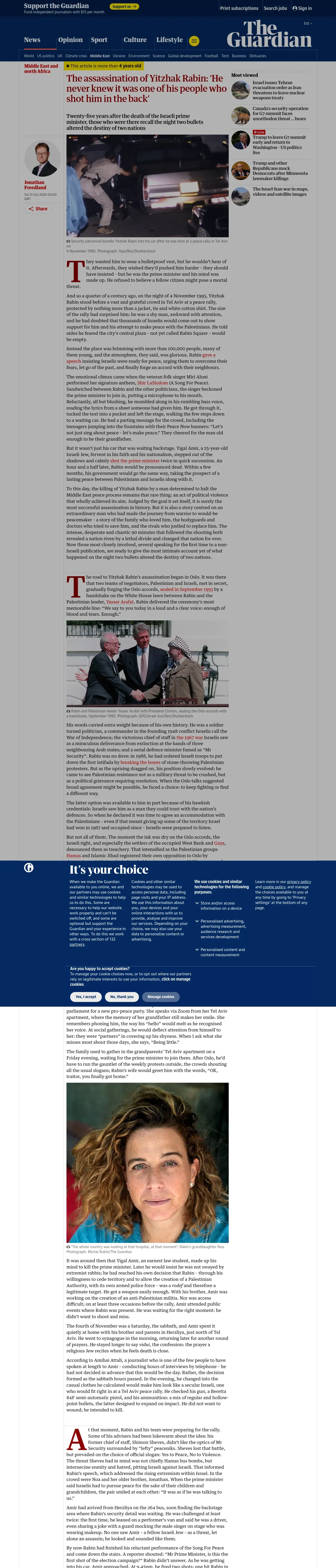 https://www.theguardian.com:443/world/2020/oct/31/assassination-yitzhak-rabin-never-knew-his-people-shot-him-in-back
