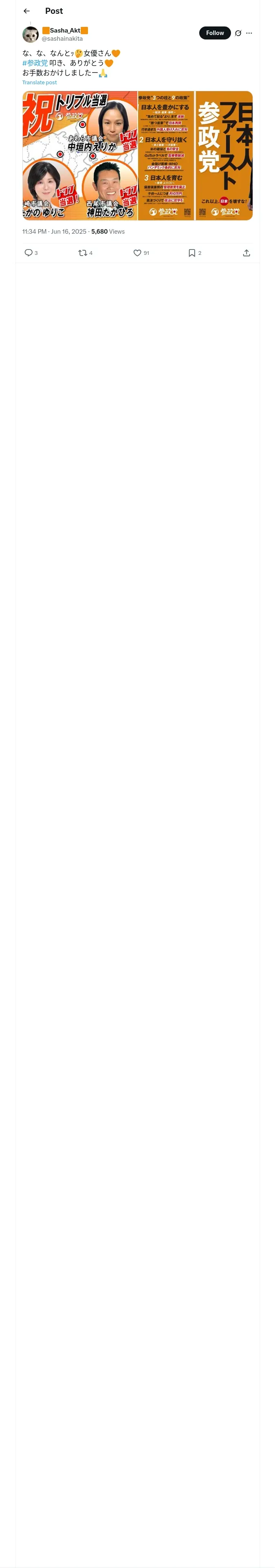 取得元URL: https://x.com:443/sashainakita/status/1934620661412184203