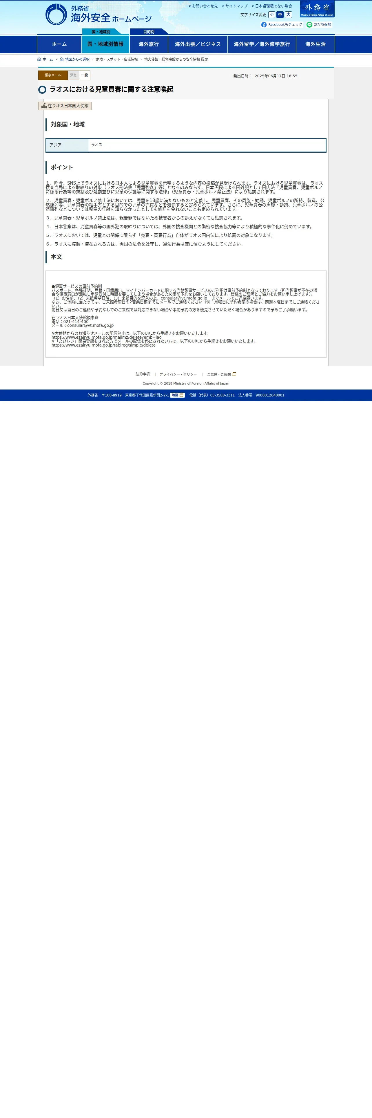 https://www.anzen.mofa.go.jp:443/od/ryojiMailDetail.html?keyCd=157788