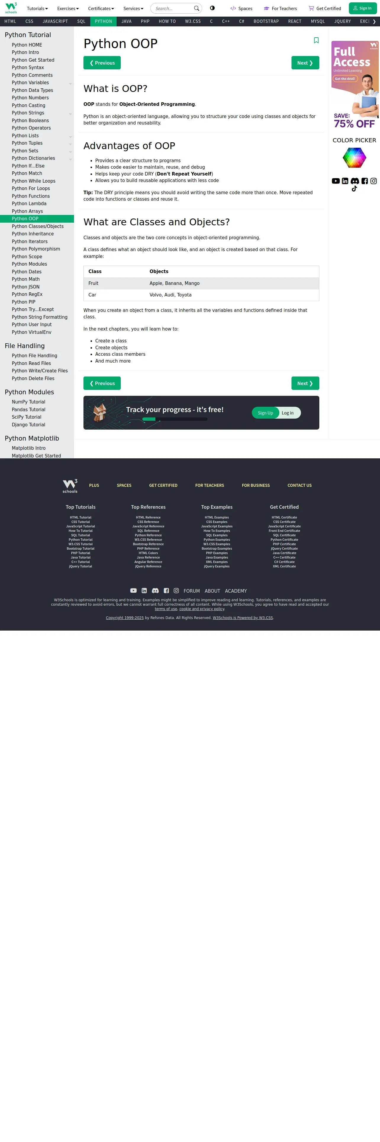 取得元URL: https://www.w3schools.com:443/python/python_oop.asp