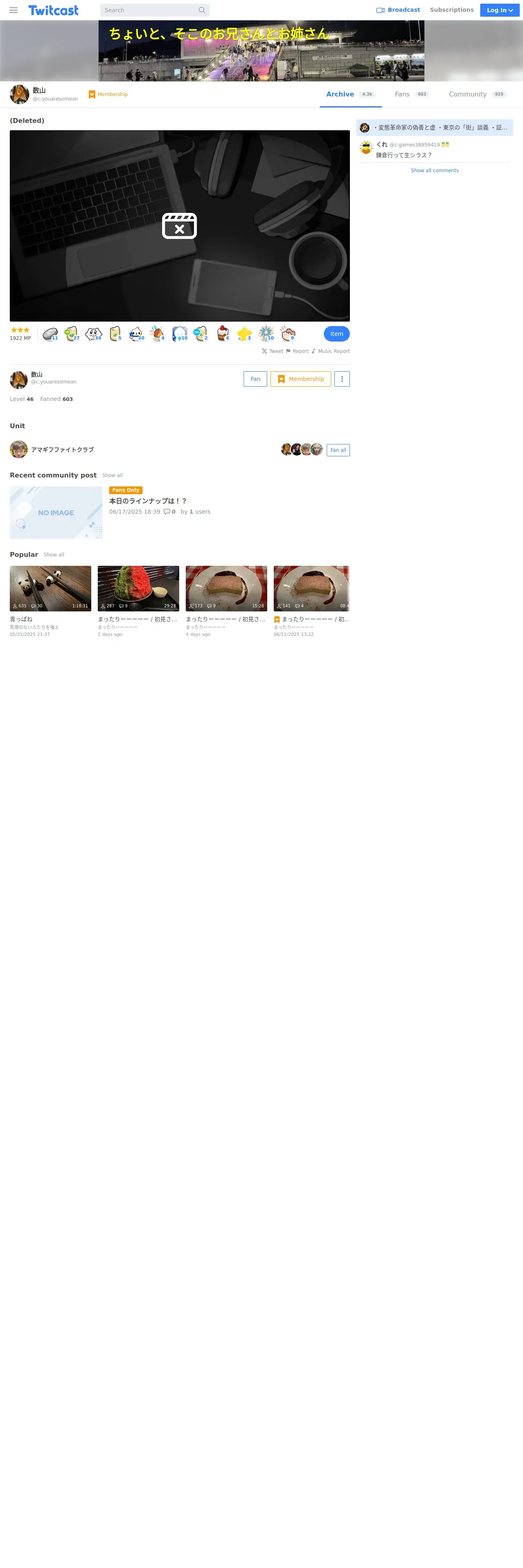 https://twitcasting.tv:443/c:youaresomean/movie/818254941