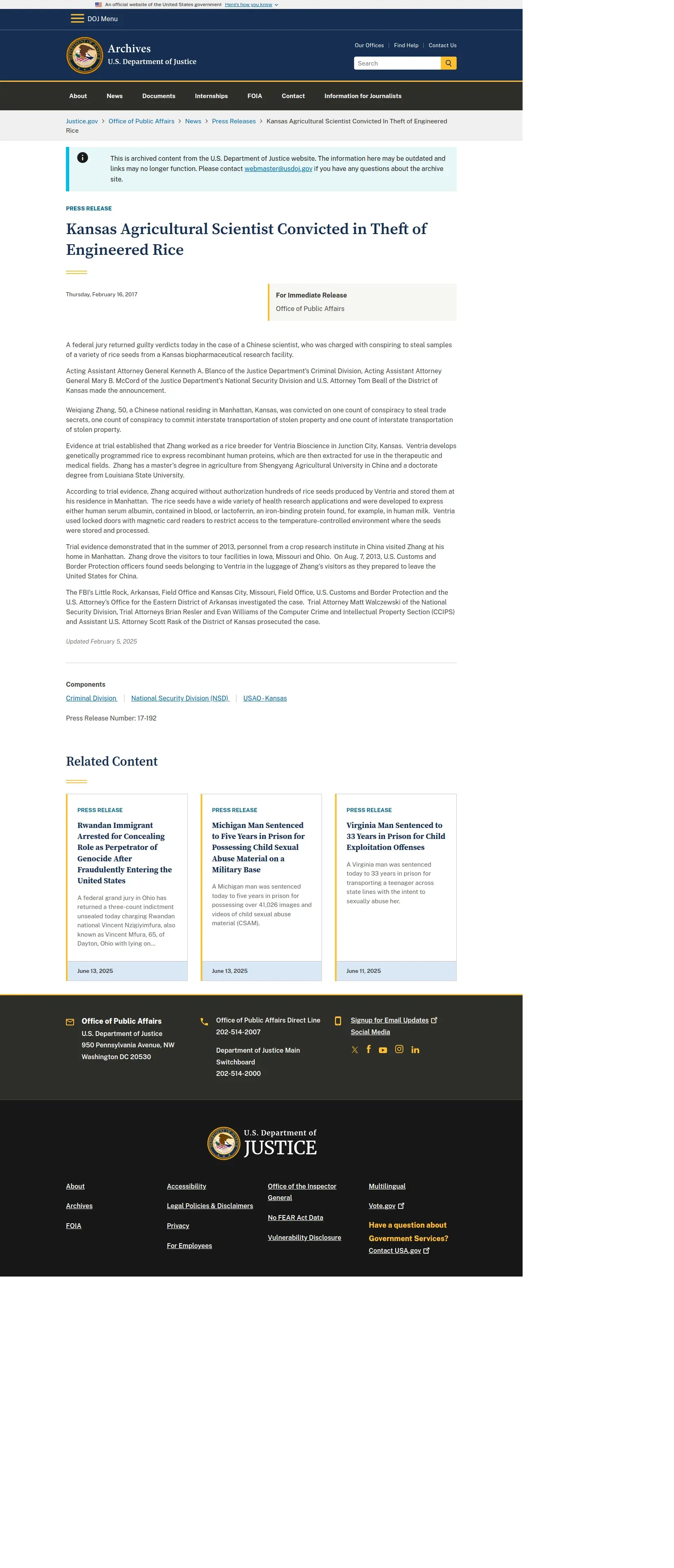 https://www.justice.gov:443/archives/opa/pr/kansas-agricultural-scientist-convicted-theft-engineered-rice