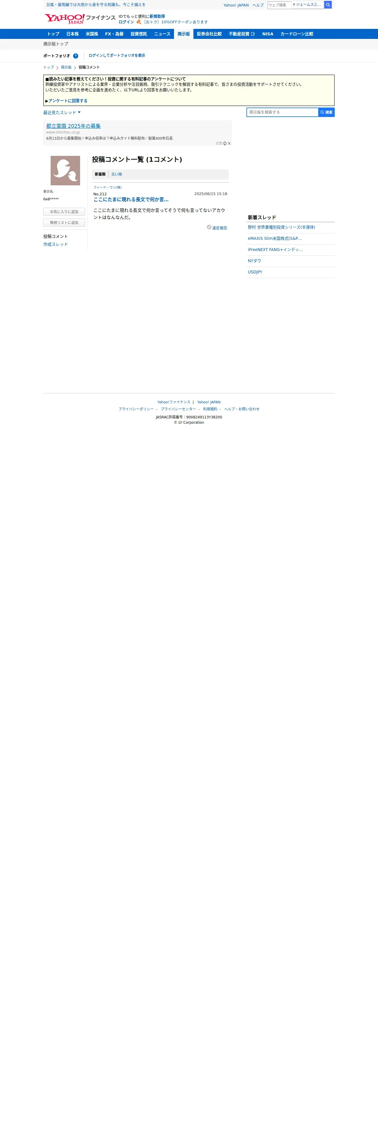 https://finance.yahoo.co.jp:443/cm/personal/history/comment?user=6e82bc0d00dbbb655d003639ce8bfc5f7c38203452e3d88c9320216bfc29d5dd