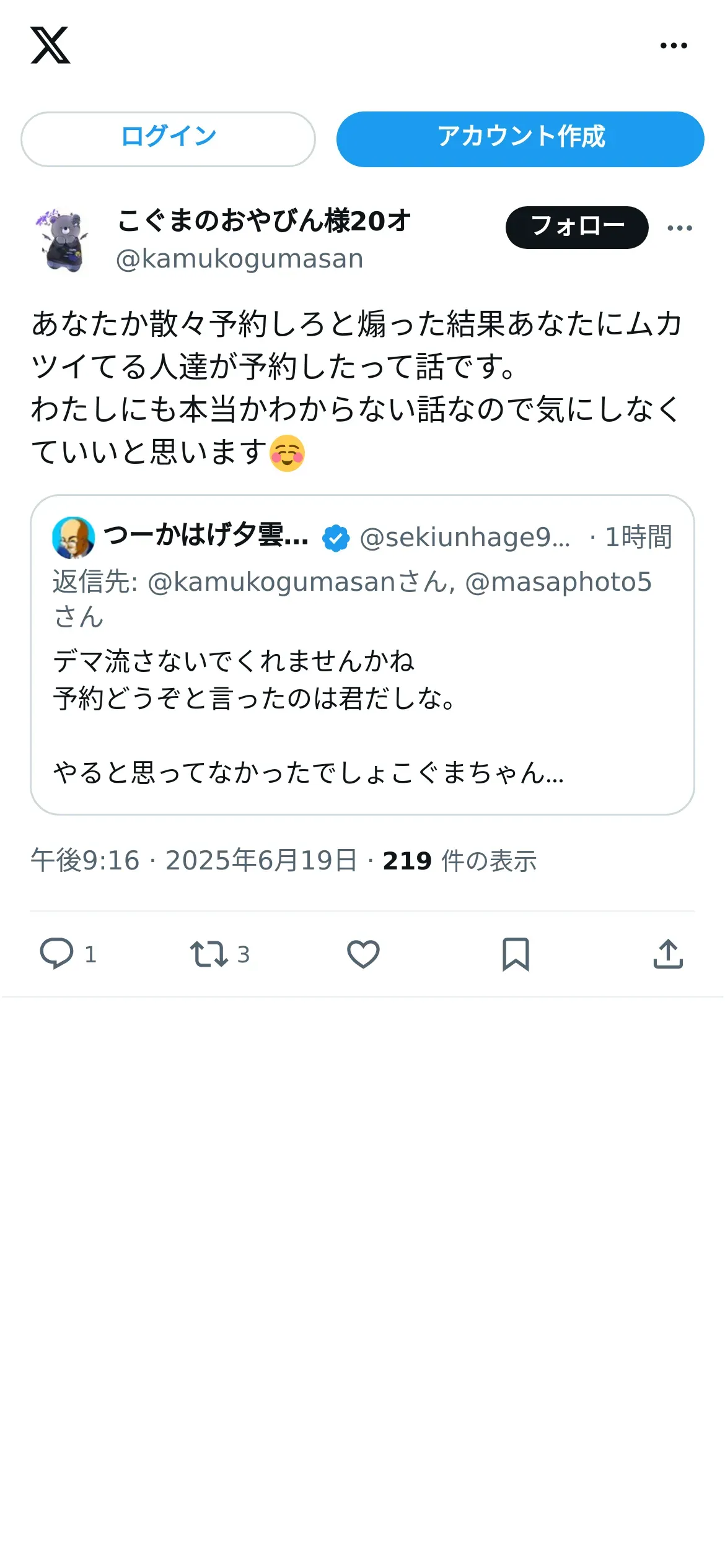 https://x.com:443/kamukogumasan/status/1935673058645471492?t=_4xmhlY1Sud-BnZ0zVOj2w&s=19