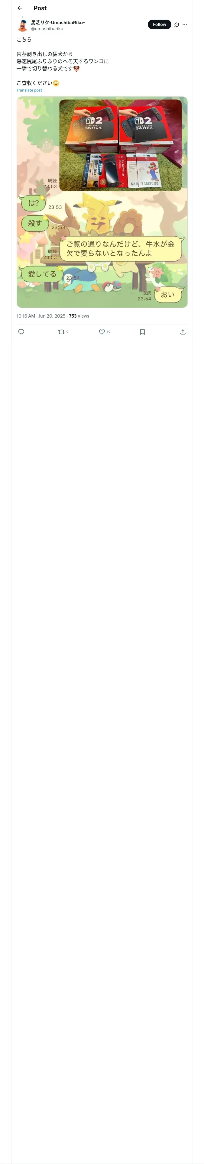 https://x.com:443/umashibariku/status/1935869430661366195