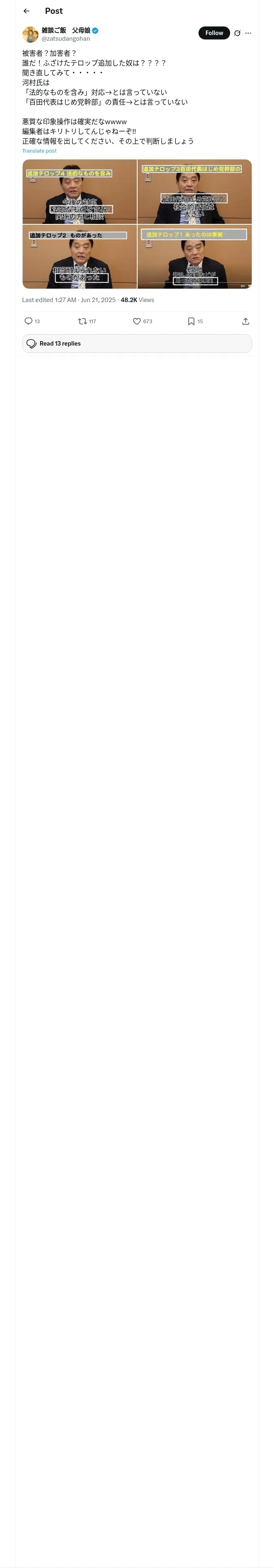 https://x.com:443/zatsudangohan/status/1936098577920696807