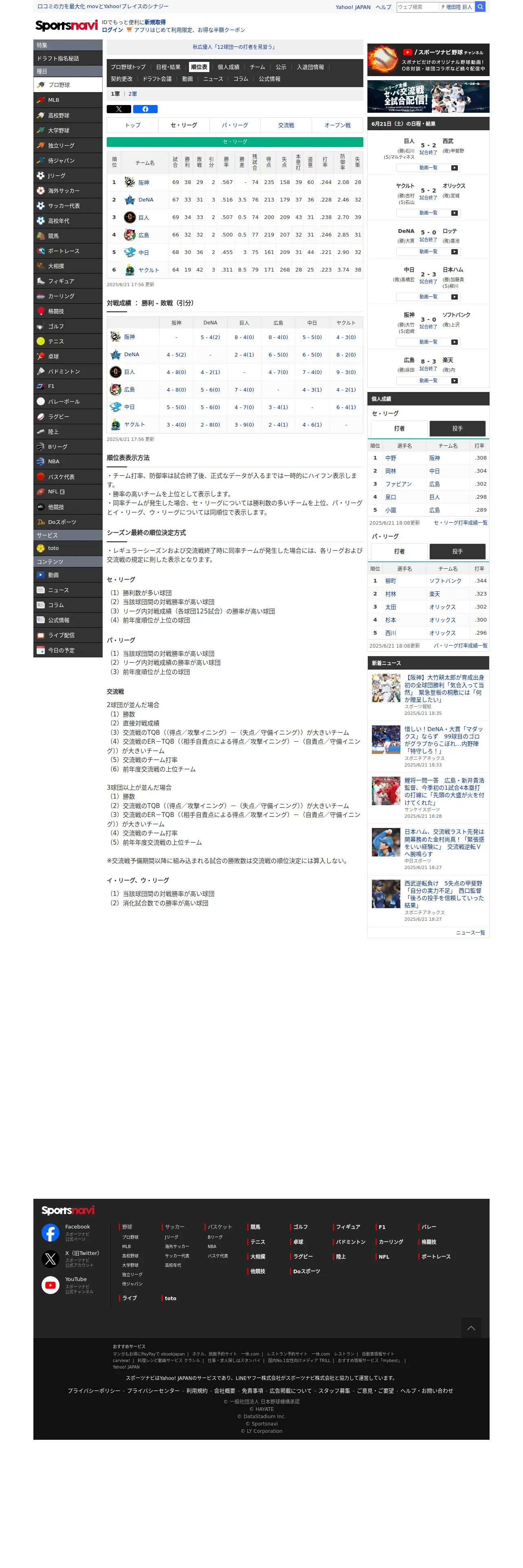 https://baseball.yahoo.co.jp:443/npb/standings/detail/1