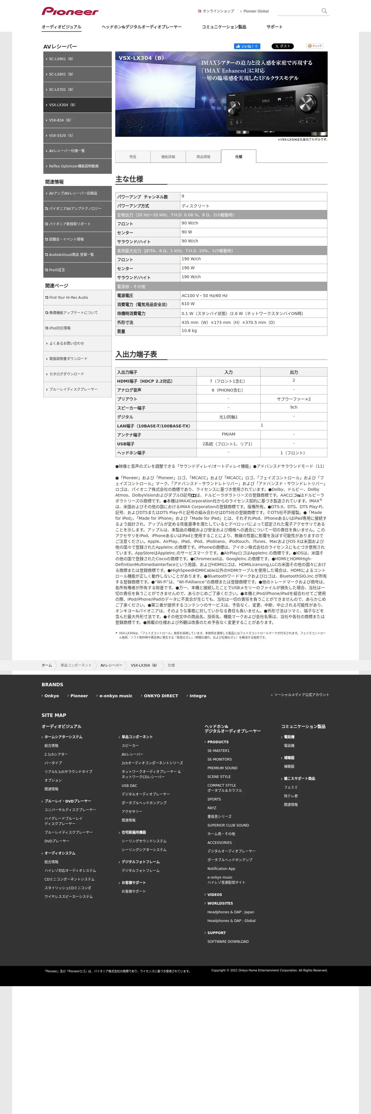 https://jp.pioneer-audiovisual.com:443/components/avamp/vsx-lx304/spec/