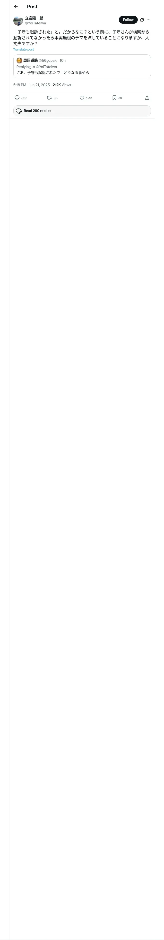 https://x.com:443/YoiTateiwa/status/1936337937131835470