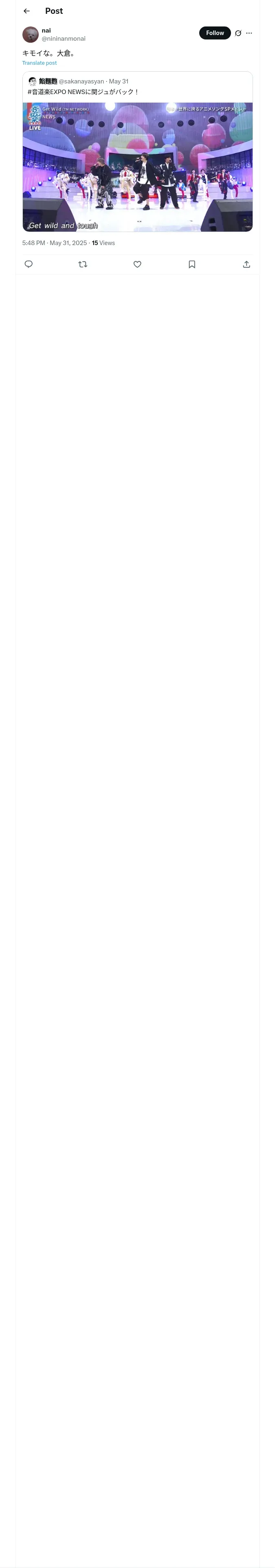 取得元URL: https://x.com:443/nininanmonai/status/1928735427659182260?t=-3GG_l4UMog91cme97rULA&s=19