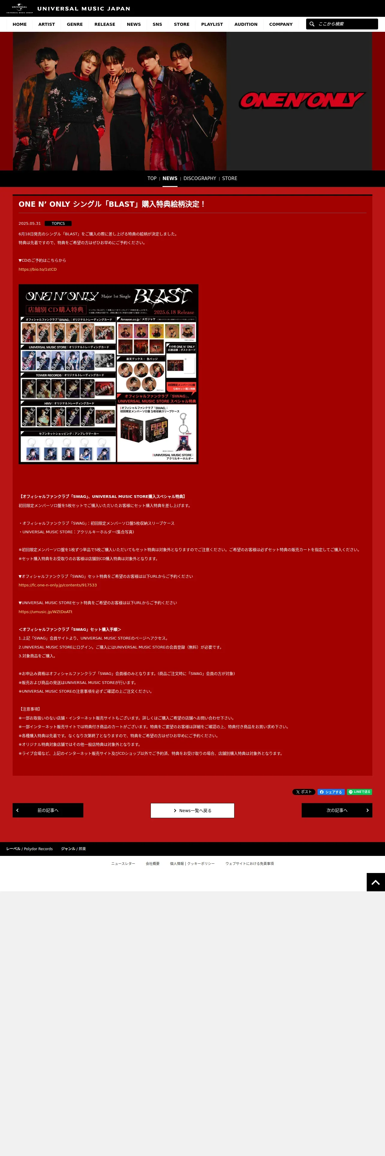 https://www.universal-music.co.jp:443/one-n-only/news/2025-05-31/