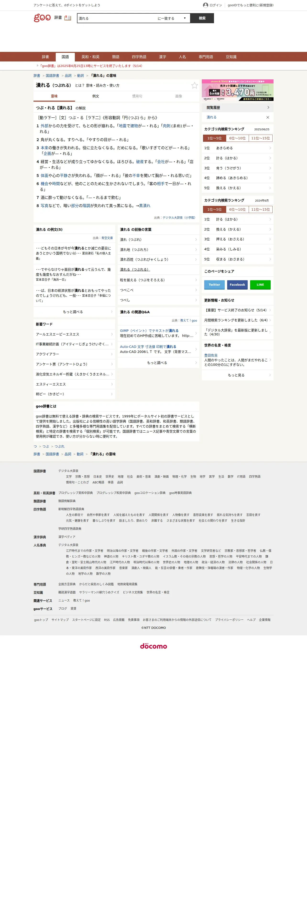 https://dictionary.goo.ne.jp:443/word/%E6%BD%B0%E3%82%8C%E3%82%8B/