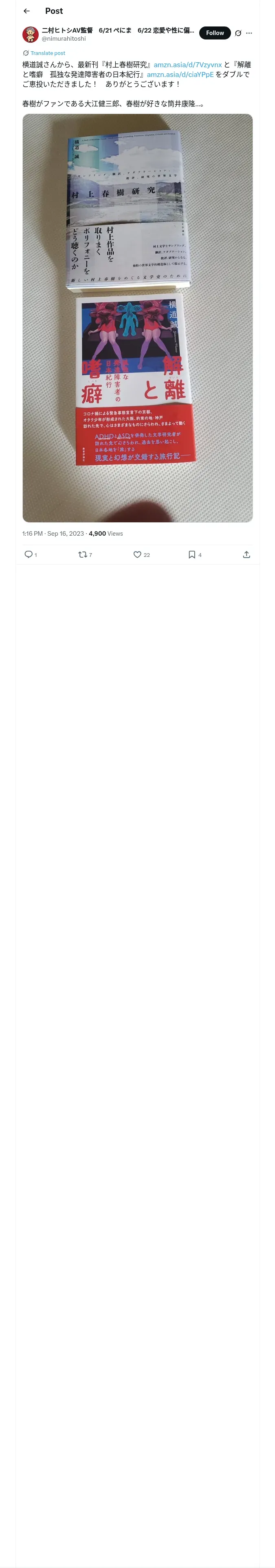 https://x.com:443/nimurahitoshi/status/1702899272205918457