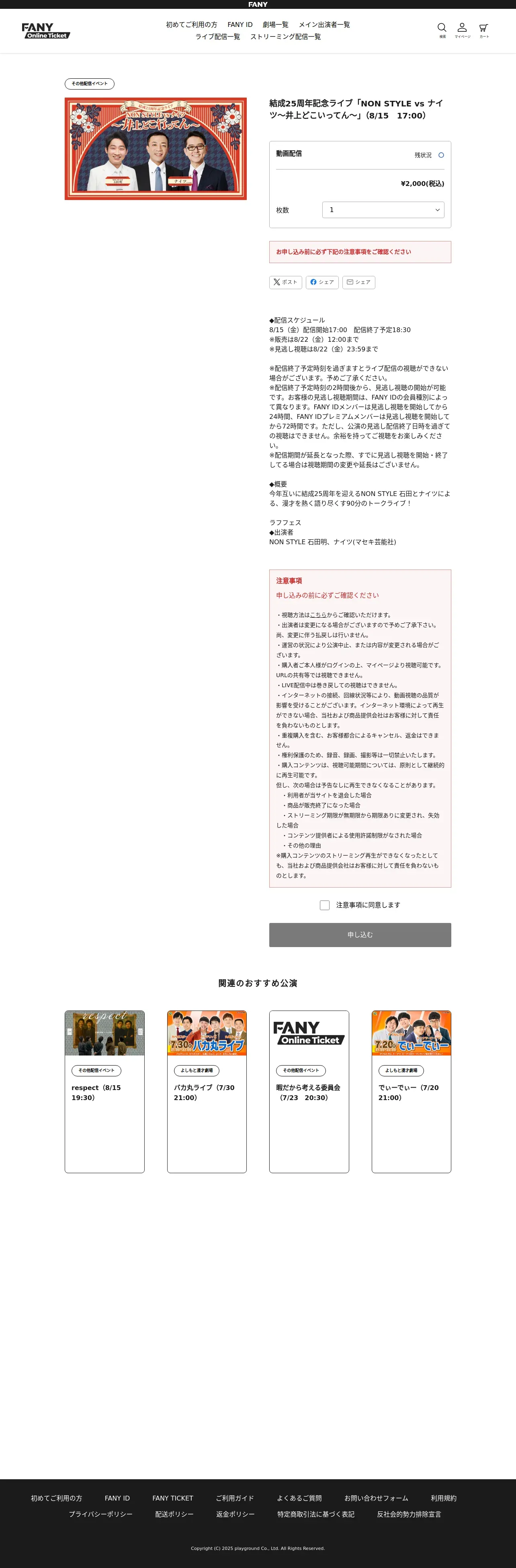 https://online-ticket.yoshimoto.co.jp:443/products/%E7%B5%90%E6%88%9025%E5%91%A8%E5%B9%B4%E8%A8%98%E5%BF%B5%E3%83%A9%E3%82%A4%E3%83%96-non-style-vs-%E3%83%8A%E3%82%A4%E3%83%84-%E4%BA%95%E4%B8%8A%E3%81%A9%E3%81%93%E3%81%84%E3%81%A3%E3%81%A6%E3%82%93-8-15-17-00