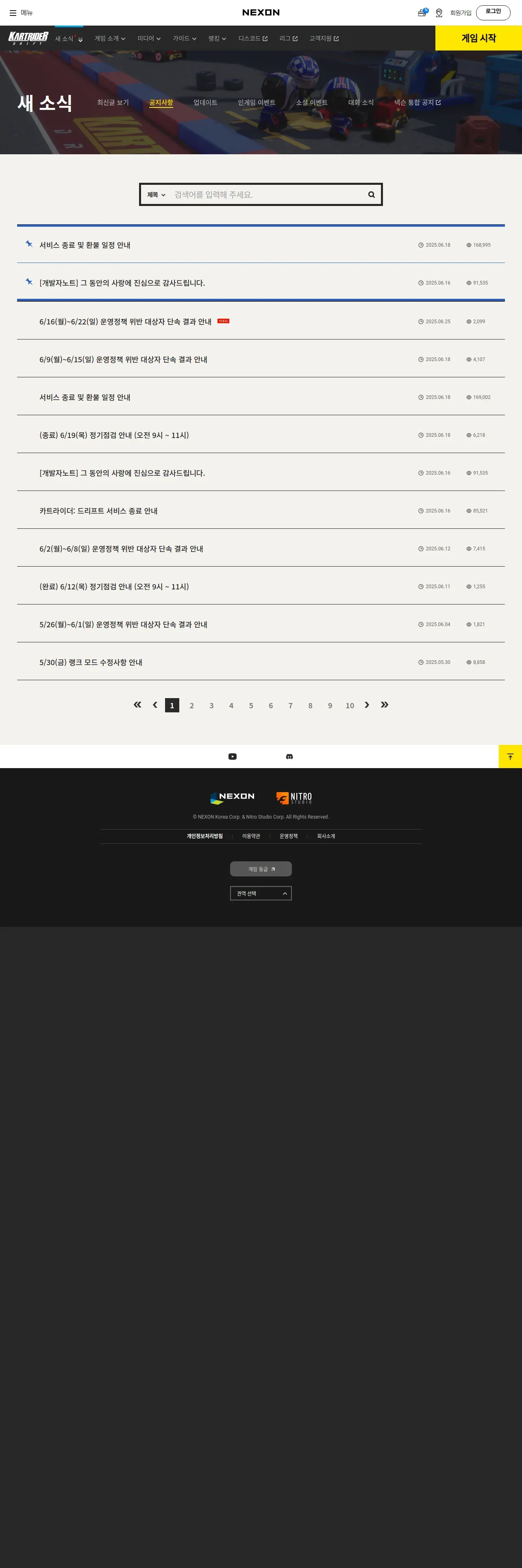 https://kartdrift.nexon.com:443/kartdrift/ko/news/announcement/list