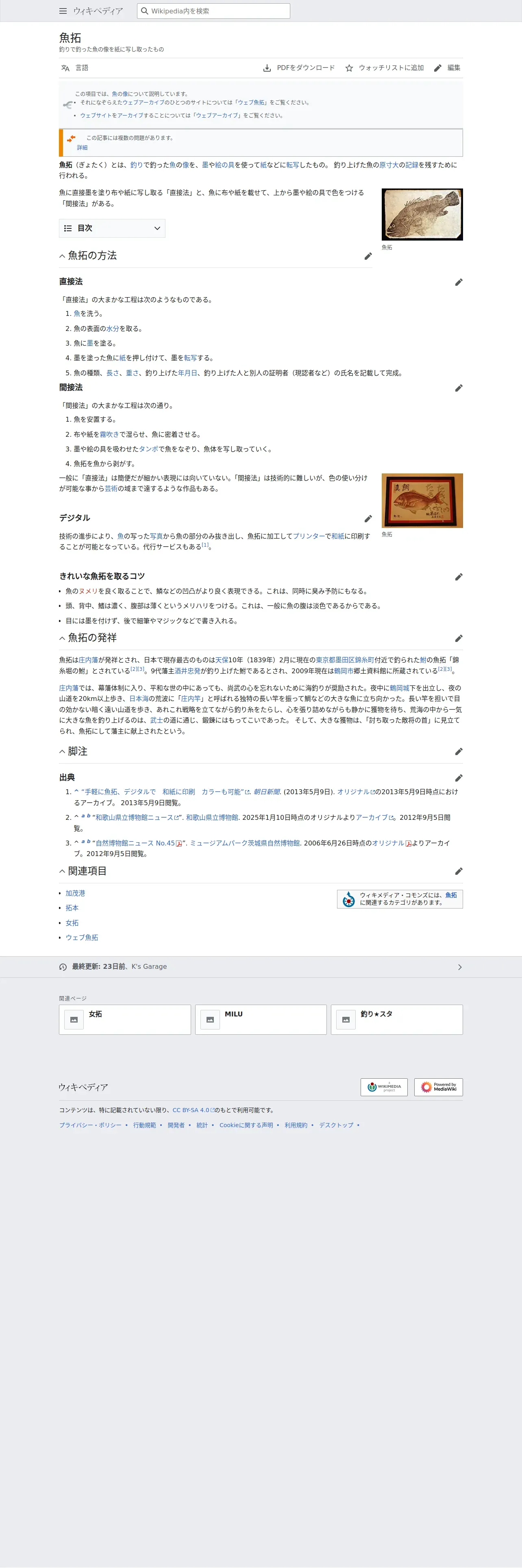 最古 - 最も古い魚拓へ飛ぶ
