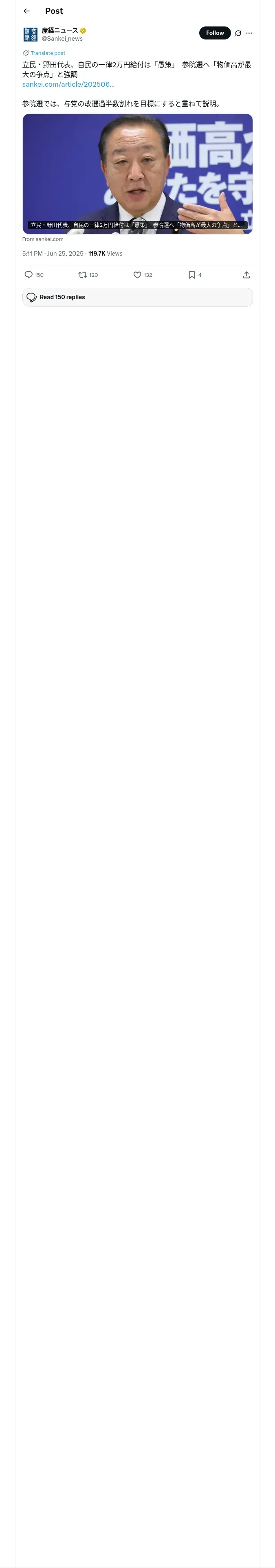 取得元URL: https://x.com:443/Sankei_news/status/1937785655066787942