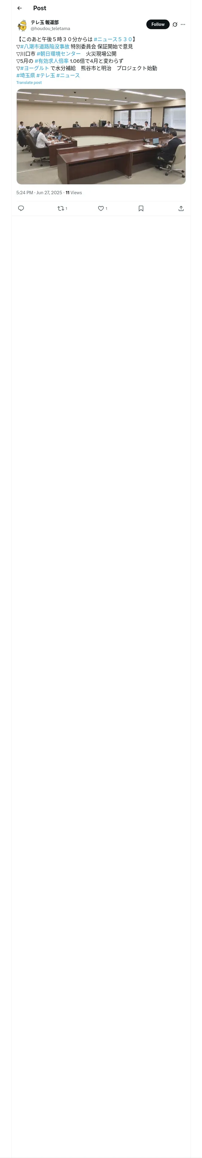 取得元URL: https://x.com:443/houdou_teletama/status/1938513811885224399