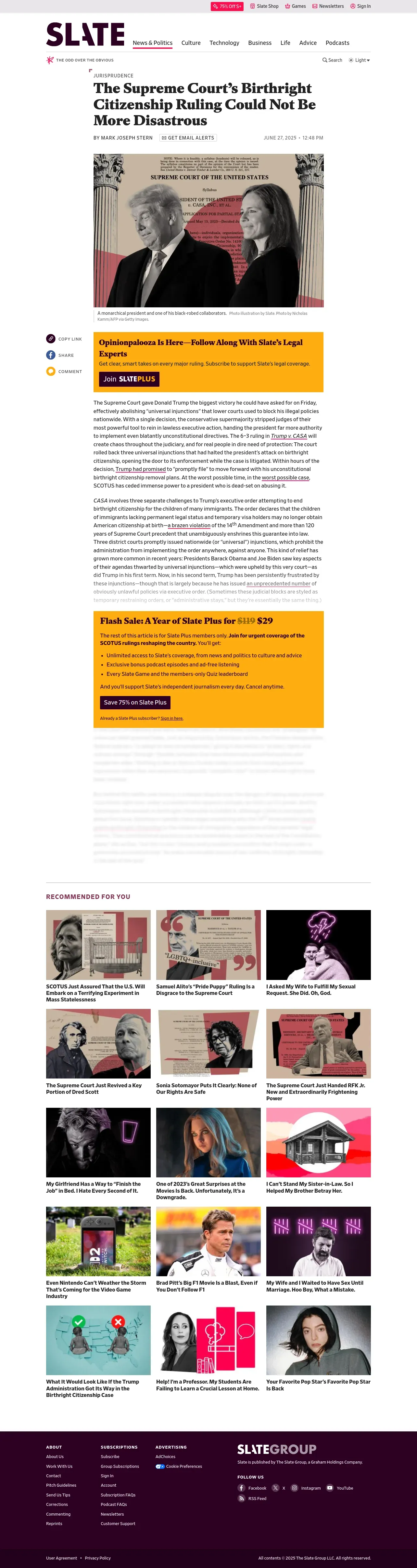 https://slate.com:443/news-and-politics/2025/06/supreme-court-trump-victory-birthright-citizenship-disaster.html?fbclid=IwY2xjawLM4iBleHRuA2FlbQIxMQBicmlkETFmYzYzYjNZNHhHQzA3YlBWAR6FbNzu2Km8_c3kpwweGeX-N94Albwy12up-wBb5StPljWMhTn5vHzfI5eObQ_aem_NEFTCljjCQhQX-d8bWfx1g