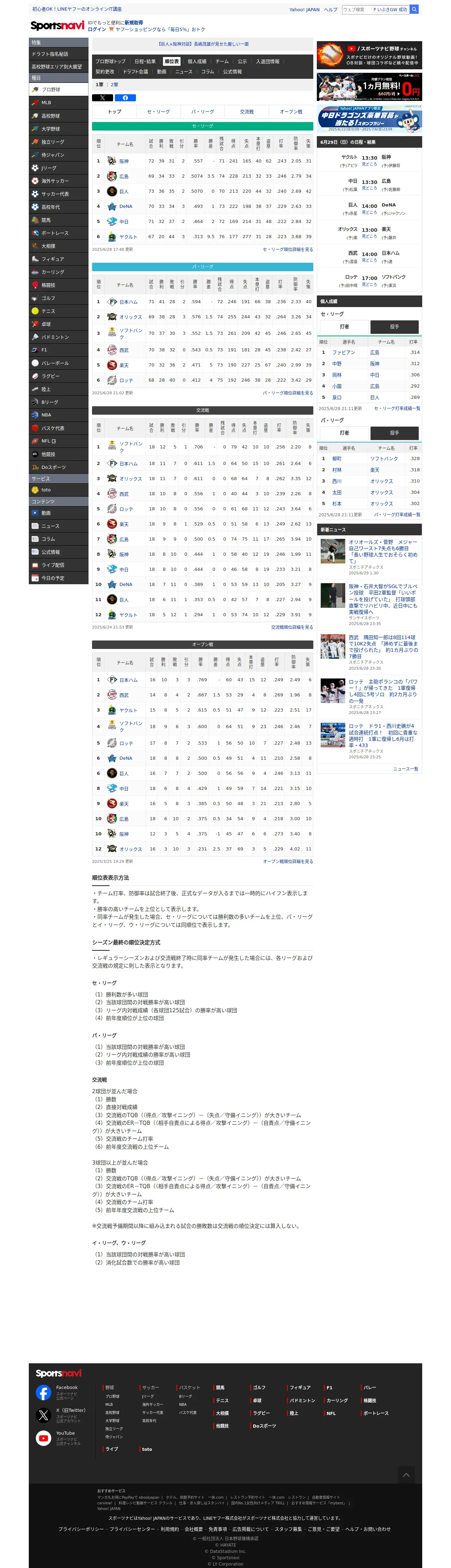 https://baseball.yahoo.co.jp:443/npb/standings/