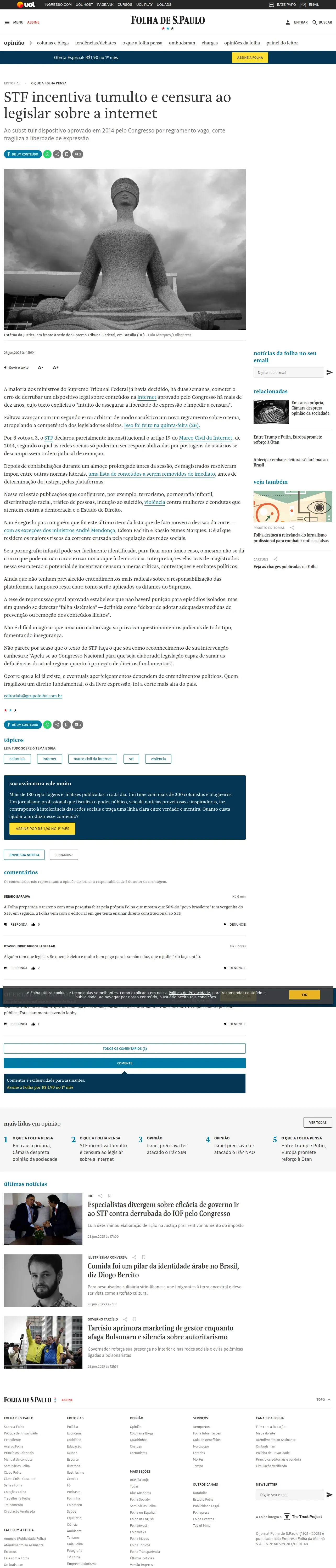 https://www1.folha.uol.com.br:443/opiniao/2025/06/stf-incentiva-tumulto-e-censura-ao-legislar-sobre-a-internet.shtml
