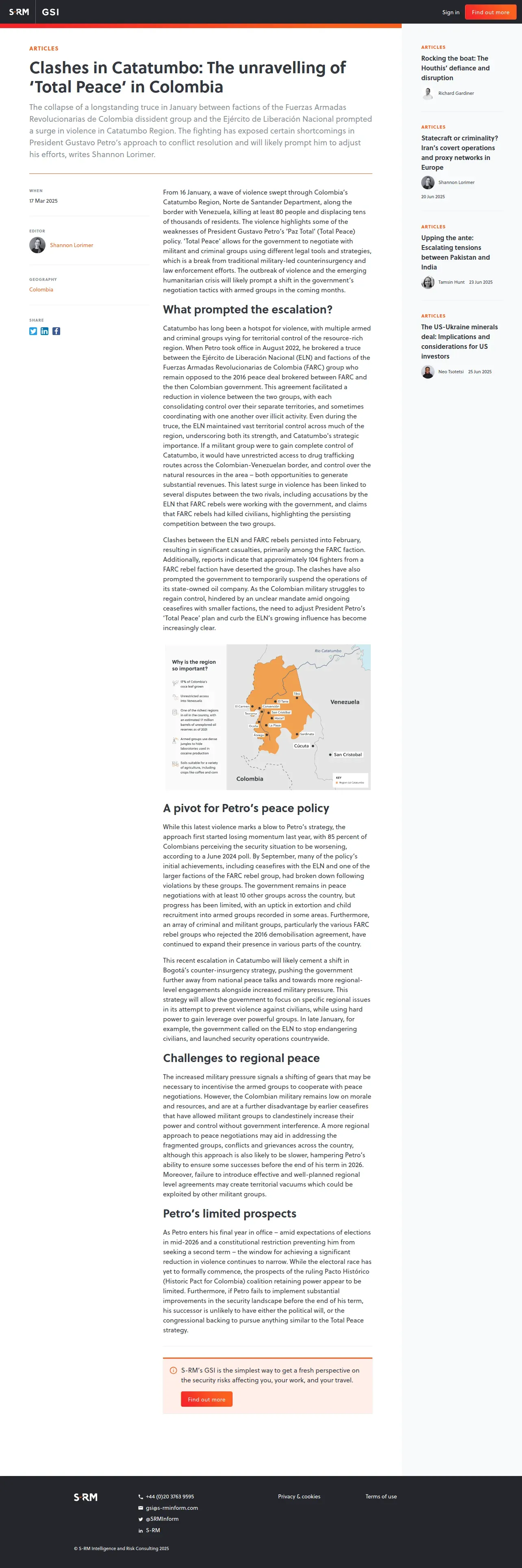 取得元URL: https://gsi.s-rminform.com:443/articles/clashes-in-catatumbo-the-unravelling-of-total-peace-in-colombia