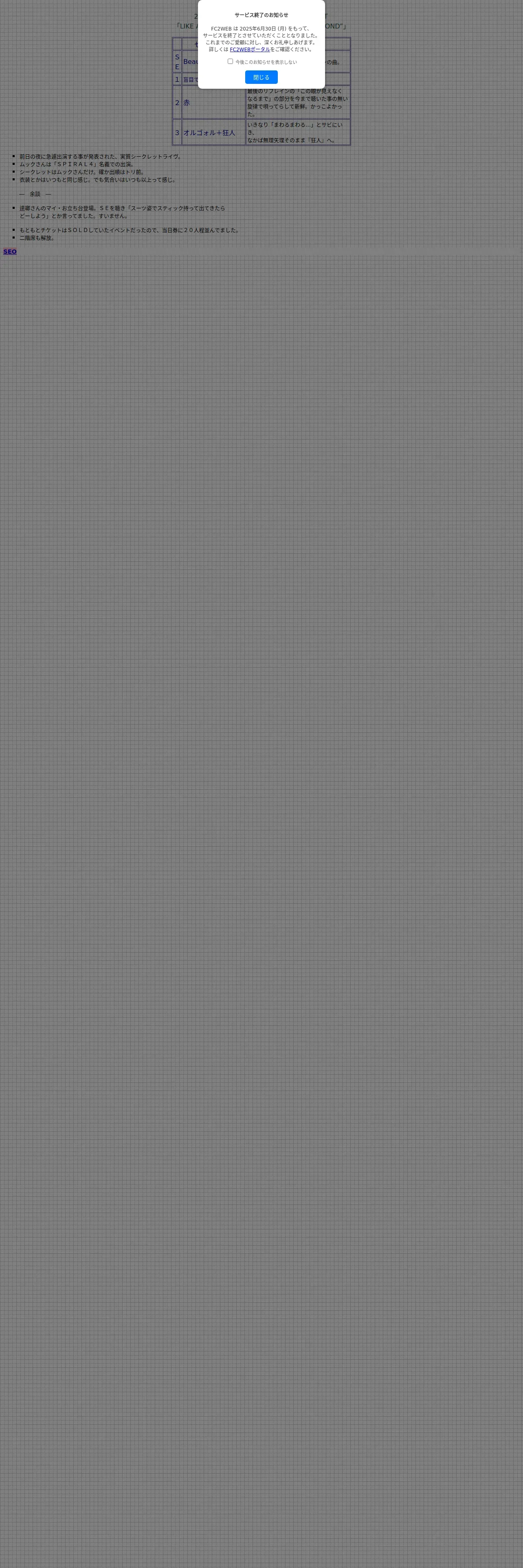http://twistedcircle.fc2web.com/livenotes/20011013.htm