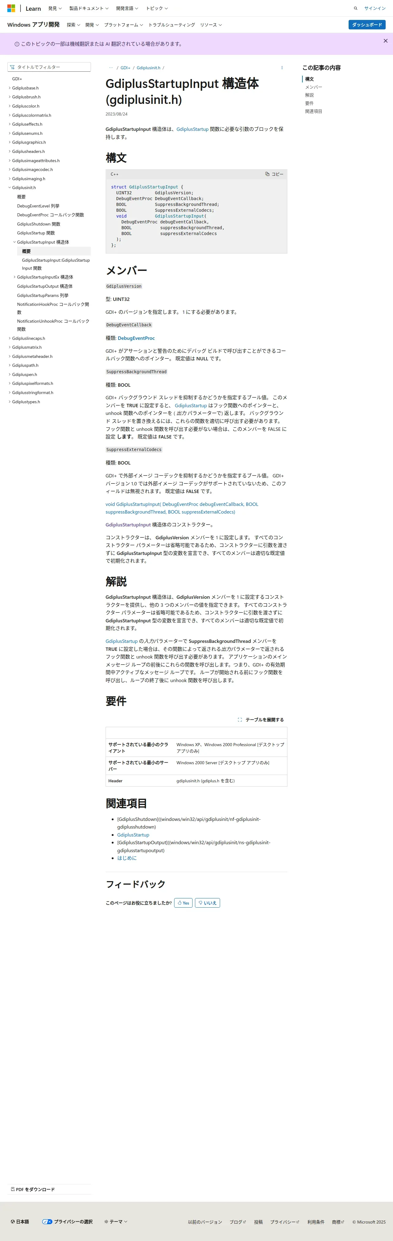 https://learn.microsoft.com:443/ja-jp/windows/win32/api/gdiplusinit/ns-gdiplusinit-gdiplusstartupinput