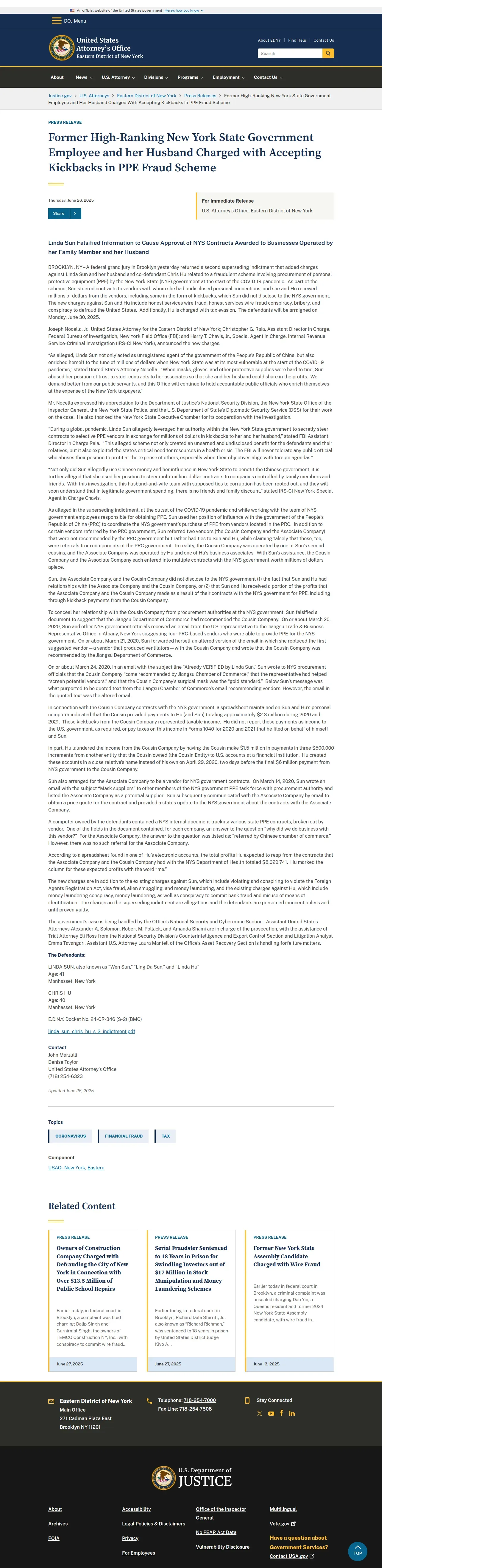 取得元URL: https://www.justice.gov:443/usao-edny/pr/former-high-ranking-new-york-state-government-employee-and-her-husband-charged