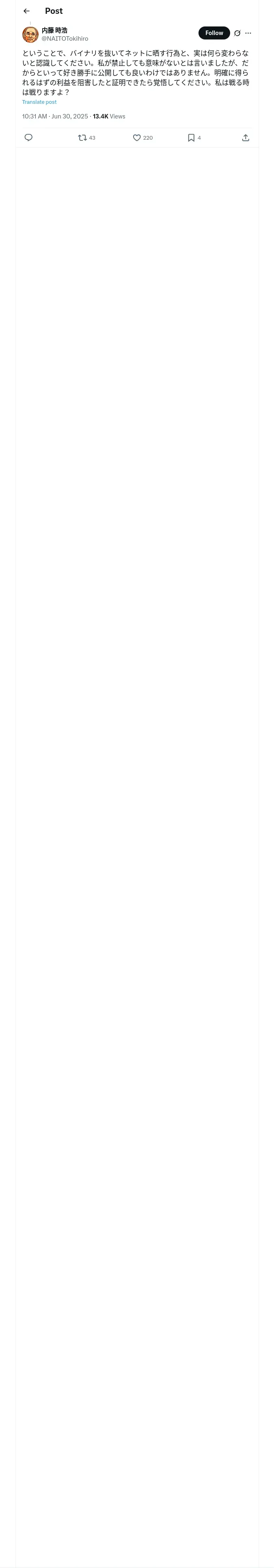 https://x.com:443/NAITOTokihiro/status/1939496896097349682